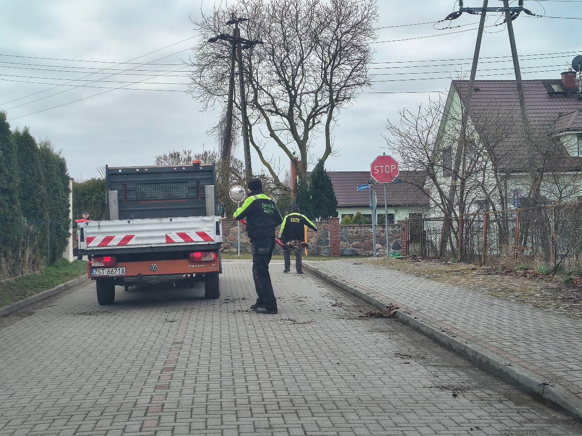 Pracownicy zatrudnieni w Urzędzie Gminy sprzątają gminne jezdnie i chodniki. Dodatkowo trwają prace polegające na oczyszczaniu dróg z roślinności utrudniającej przejazd oraz regulowane są studzienki kanalizacji deszczowej /w tym poziomowana kostka brukowa/.